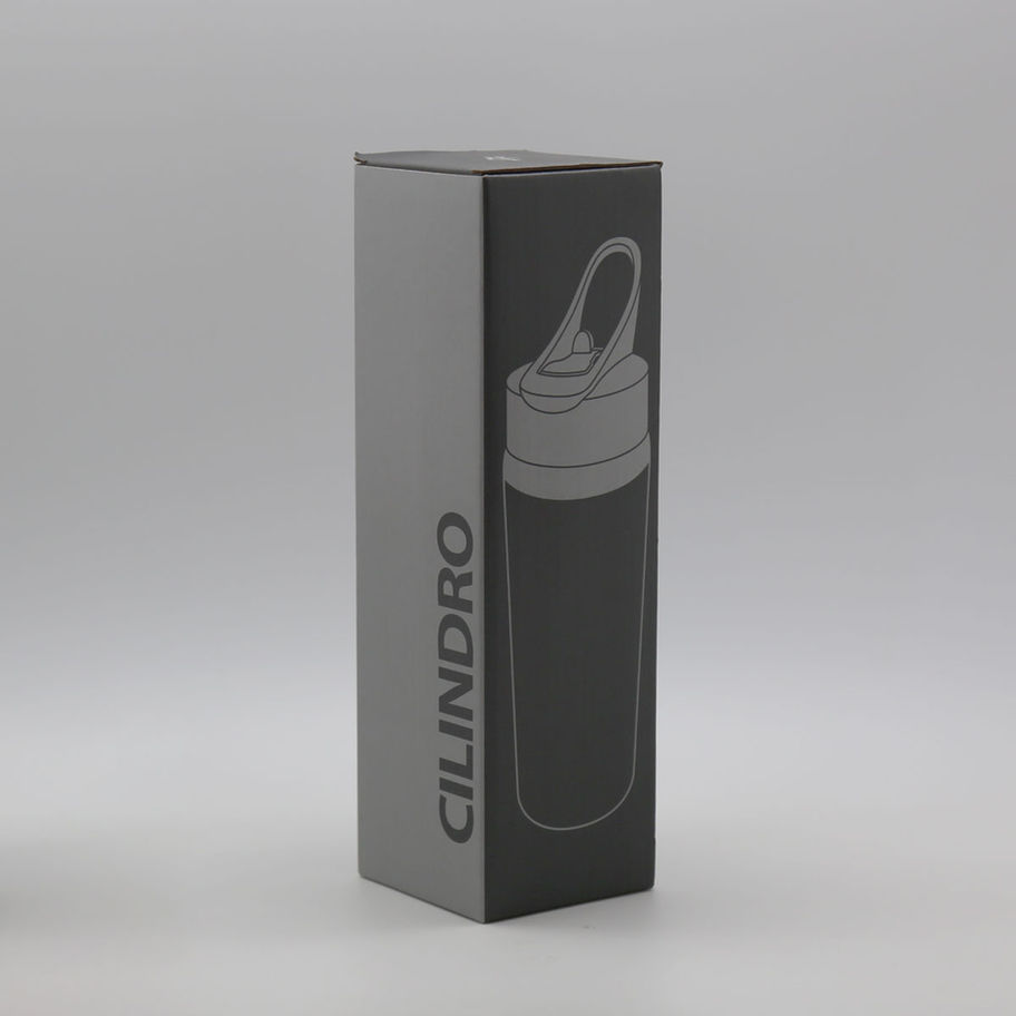 Cilindro de aluminio de una pared. Tapa de plástico con cierre de rosca, asa y popote. Incluye caja individual.
