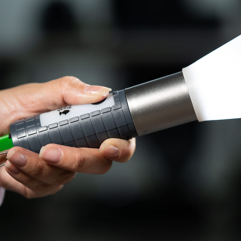 La Linterna COB posee distintos tipos de intensidad lumínica. Textura para mejor agarre y gancho carabinero para sujetar y transportar fácilmente, además, un puerto para carga tipo C en la parte inferior (incluye cable).