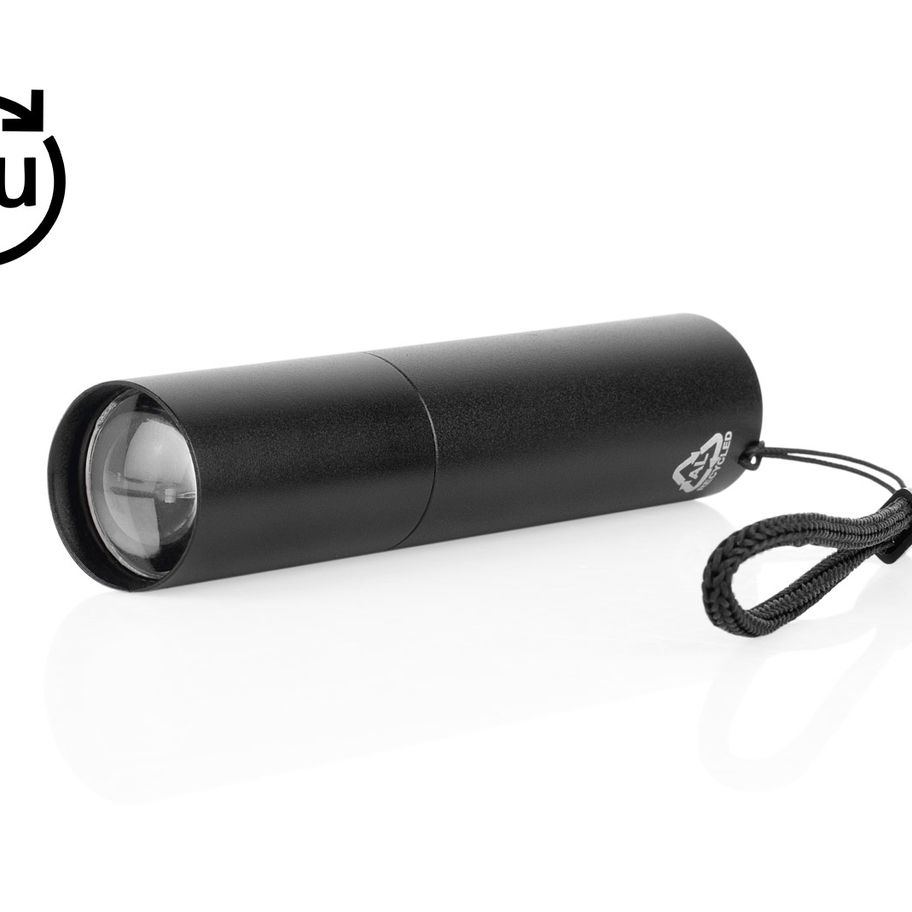 Linterna recargable de alto rendimiento con 110 lúmenes y 3 modos de luz ajustables, que se controlan mediante un botón ubicado junto al puerto de carga. Su diseño incluye función zoom in/out, permitiendo enfocar o ampliar la iluminación deslizando el cuerpo de la linterna. Equipada con batería interna de 400 mAh, cable de carga incluido y práctico cordón para llevarla cómodamente. Ideal para uso diario, actividades al aire libre o emergencias.