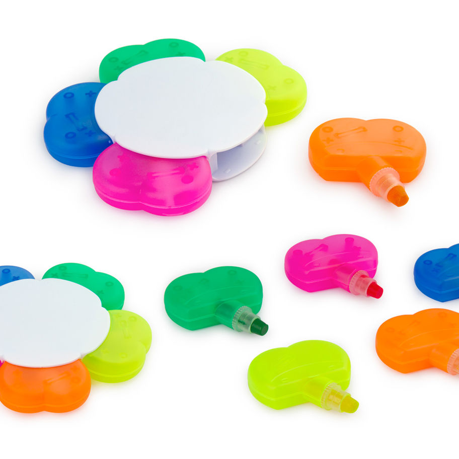 Set de 5 resaltadores en parafina con forma de flor. No se seca. Colores surtidos.