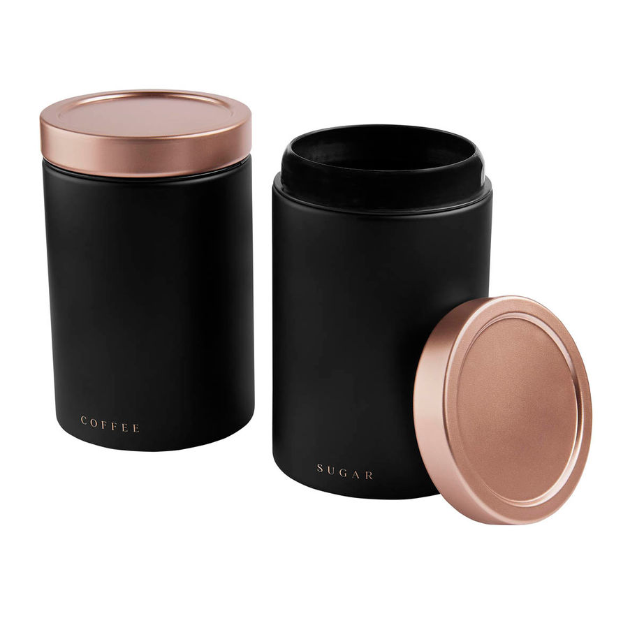 Incluye dos contenedores metalicos para cafe y azucar. Las tapas tipo push aseguran un cierre hermetico, manteniendo la frescura y el aroma de tus productos por mas tiempo. Con un diseno funcional y estetico, este set es perfecto para aquellos que valoran tanto la calidad como el estilo en su hogar. Incluye caja individual.