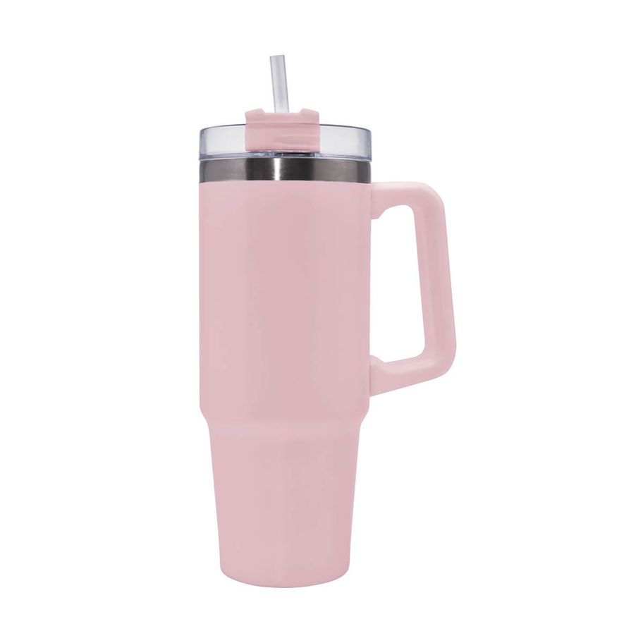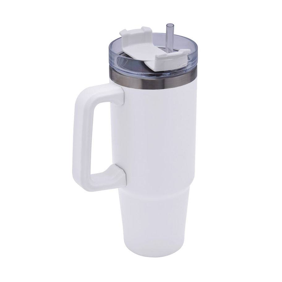 Doble pared. Cerrado al vacio. Pared interna y externa acero inoxidable. Tapa de plastico con cierre de rosca y sobretapa giratoria de tres posiciones con ranura para popote. Incluye popote y asa de plastico. Mantiene temperatura caliente 6 hrs y temperatura fria 8 hrs aproximadamente. Incluye caja individual.