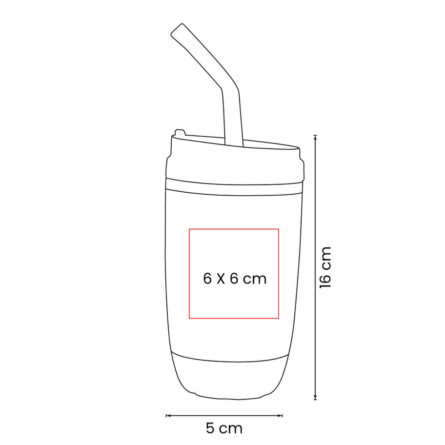 Doble pared. Cerrado al vacío. Pared interna y externa de acero inoxidable. Tapa push de plástico con sobretapa de silicón removible y ranura especial con tapón para popote. Incluye popote metálico con boquilla de silicón. Mantiene temperatura caliente 2 hrs y temperatura fría 8 hrs. Caja individual incluida.